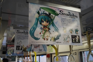 | 雪ミク電車・外装 | 雪ミク電車・車内広告 |