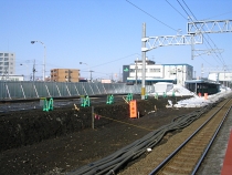 また、旧北口駅舎の跡地は地面が整えられ、仮線路用ホームの延長工事に向けた作業が行われています。